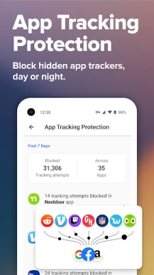 Protect Your Privacy in Other Apps – Block most hidden app trackers in other apps day or night, and prevent third-party companies from invading your privacy with App Tracking Protection. This feature uses a VPN connection, but is not a VPN. It works locally on your device and does not collect personal data.