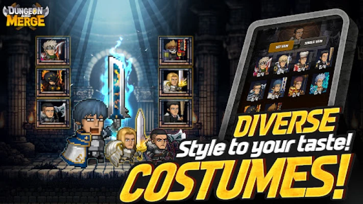 Dress up your pixel dot characters with various Costumes in this afk RPG game.