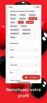 Créez votre compte et complétez votre profil : description physique, biographie, disponibilités, préférences culinaires, sports favoris… sans oublier vos photos !