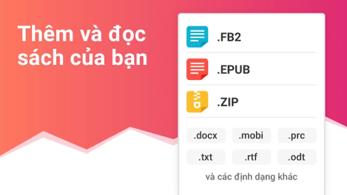 eBoox là trình đọc sách thú vị nhất: lưu trữ fb2, epub, pdf, doc, docx, mobi, prc, txt, rtf, odt, html, cbr, cbz, zip và rar. Tải xuống sách thuận tiện cho người đọc từ bất kỳ thư mục nào của điện thoại và thẻ SD, từ đám mây và trình duyệt.