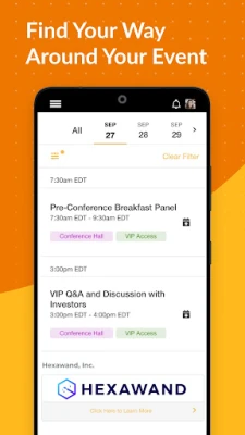 - See what’s coming up next at the event and manage your schedule