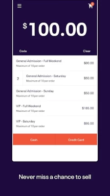 * Quickly accept secure payment for tickets and merchandise on-site and never miss a chance to sell.