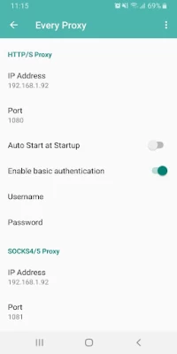 Authentication is enabled for both the HTTP/S and Socks proxies.
