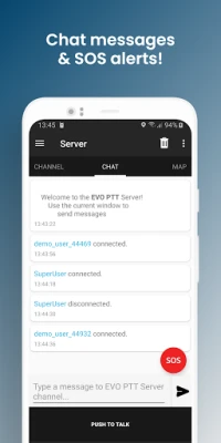 Note: The demo channel is public and shared with other users evaluating EVO PTT.