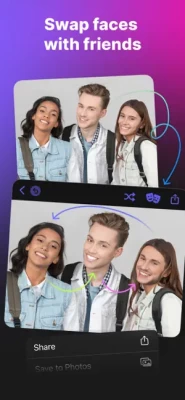 Make a new version of yourself, prank your friends, or anonymize your photos. Create funny pics in just a few taps! Our AI-powered Face Swapper works perfectly even in most complex cases: faces turned sideways, glasses, sunglasses, headwear, and facial hair.