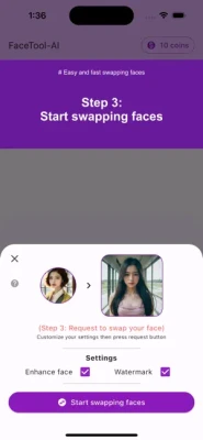 - Swapping faces: This application provides you with realistic face change effect. Get 100% real-look AI face for any purpose in seconds.