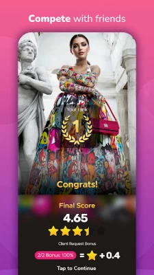 Challenge of the day: Participate in competitions where you're in control of everything: killer clothing, shoes, and backgrounds, to fill your missions and get the results of your vote.