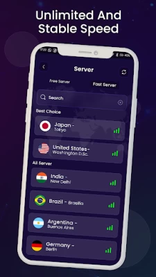 - One tap to set up the stable and fast connection without paying.