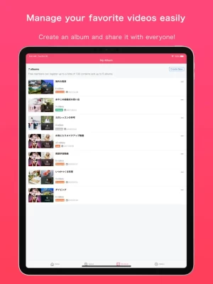 Newly uploaded videos of accounts you follow, videos watched yesterday, and favorite videos registered in your albums are all securely synced between smartphone site, PC, and applications.