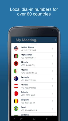 Free Conference Call HD provides a quick and easy way for you to dial into conference calls without having to remember the dial-in credentials. Save all of your conference call dial-in numbers and access codes using this app. With the Free Conference Call HD you can store and create multiple accounts, distribute invitations and instantly dial into a conference call via 3G/4G data network and or regular mobile carrier.