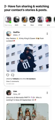 1-Meet like-minded people and have fun: You will be able to connect with other users with the same interests as you and have fun sharing adventures with posts, stories, and private chats.