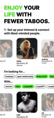From singles looking for casual dates, open relationships, polyamory, or other etic non-monogamous relations, to couples looking to live new fantasies together, fetish and BDSM lovers, and other lifestyles.