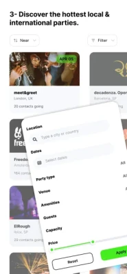 4-Discover secret parties. You can also find and join parties of all kinds, both public and private, local and international. If you dare, create and publish your own private party and make a good one ;)