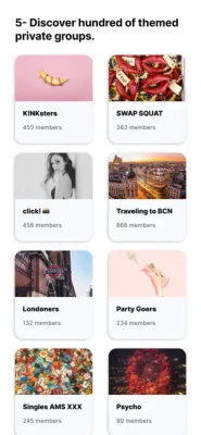 3- Explore your fantasies: You can join or create private groups; In fiesters, you will find hundreds of thematic groups where you will find people with your same desires.