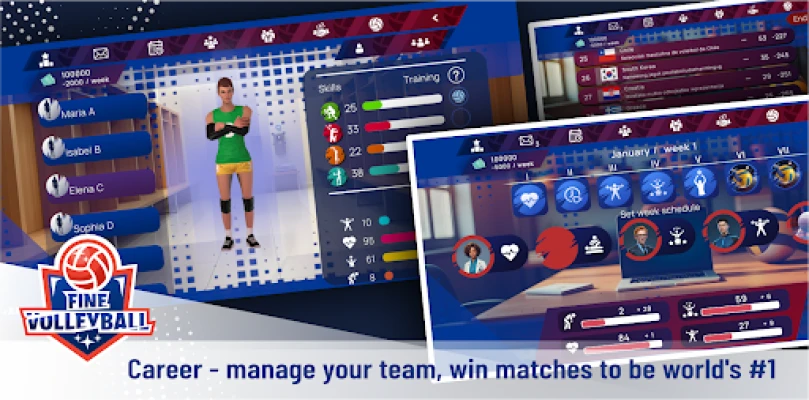 Step into the role of a coach and take control of a men’s or women’s team. Your goal is to lead your squad to the top of the world rankings! In career mode, you manage not only the lineup and strategy but also: