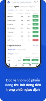 Nắm bắt và cập nhật liên tục dòng tiền trong phiên với 2 giây thao tác. Giúp trader phát hiện nhanh và chính xác các mã và nhóm cổ phiếu tăng/giảm mạnh về giá và khối lượng