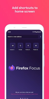 Duyệt web như không có ai theo dõi. Firefox Focus mới tự động chặn một loạt các công cụ theo dõi trực tuyến - ngay từ khi bạn khởi chạy nó đến lần thứ hai bạn để lại nó. Dễ dàng xóa lịch sử, mật khẩu và cookie của bạn, vì vậy bạn sẽ không bị theo dõi bởi những thứ như quảng cáo không mong muốn.