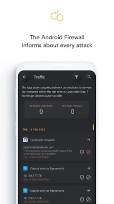 Trong thế giới kỹ thuật số ngày nay, việc bảo vệ các thiết bị của chúng ta khỏi các mối đe dọa trên mạng đã trở nên cần thiết. Các firewall security app là một tiên tiến cybersecurity giải pháp được thiết kế đặc biệt cho các thiết bị Android. Nó kết hợp sức mạnh của một secure firewall hệ thống để tạo lớp bảo vệ chống truy cập trái phép, phần mềm độc hại độc hại, phần mềm gián điệp và vi phạm dữ liệu tiềm ẩn. Bảo vệ quyền riêng tư trên thiết bị Android của bạn một cách tốt nhất firewall security, được làm thủ công ở Đức và tuân theo các tiêu chuẩn bảo vệ dữ liệu cao của Đức!