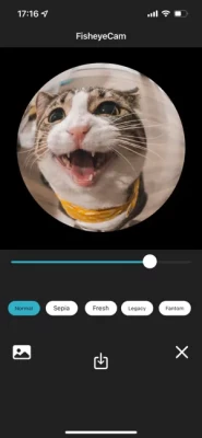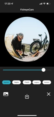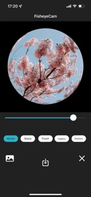 -To display and adjust the strength of the fish-eye lens in real time, you can take a picture.