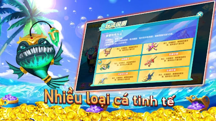 4 người trên cùng một sân khấu, người thật thi đấu, siêu đại bác, sức sát thương siêu cao, đạo cụ kỹ năng siêu ngầu, lối chơi mô-đun siêu phong phú, nâng cấp và đổi mới lối chơi bắn cá arcade cổ điển! Mang lại trải nghiệm chưa từng có.
