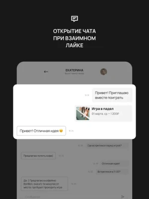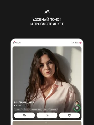 - чат открывается только при взаимной симпатии — никакого спама и давления.