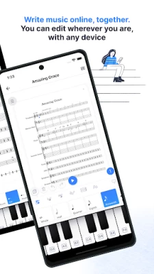 Cloud-based composer app, you can also edit music scores with your web browser and collaborate in real-time across devices with friends and colleagues.