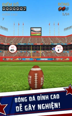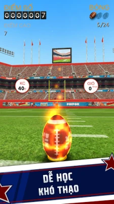 Với hệ thống điều khiển dễ học và các thử thách khó làm chủ, Flick Kick® Field Goal Kickoff là game bóng đá cực hấp dẫn khiến bạn không thể rời máy! Đá lượn cầu vồng và kiếm phần thưởng trong các điều kiện thay đổi liên tục. Hãy thể hiện kỹ năng trong game không thể thiếu dánh cho người hâm mộ bóng đá!