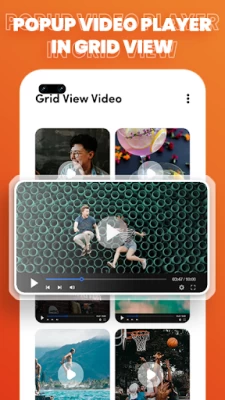 Video Popup Player with Grid View and List View: Multi Tasking Player App aligns video in Grid and List view.