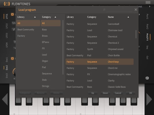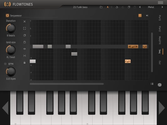 Create, modify and fine tune your patches on the go. Use the internal piano keyboard to play and listen. Integrate catchy sequences using the integrated sequencer. Create a library of patches on your mobile device.