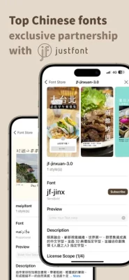 Includes over 20 free Chinese fonts and 70+ English fonts, plus exclusive original fonts from justfont (subscription), catering to all your font preferences.