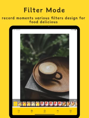 Various food filters instantly enhance the artistic sense of your food photos.