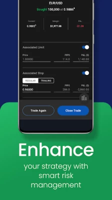 • Execute your positions in seconds with one-swipe trades, then monitor your open positions from anywhere.