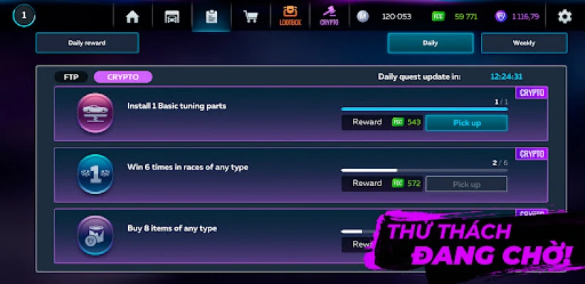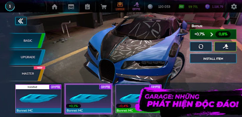 Nâng cấp ô tô của bạn và nhận phần thưởng cho các bộ phận, trong đó mỗi bộ phận có cấp độ khác nhau: cơ bản, cải tiến hay bậc thầy. Chất lượng các bộ phận càng cao, bạn càng dễ nhận được nhiều phần thưởng.