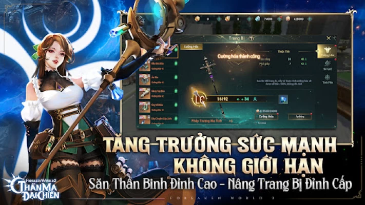- Tăng Trưởng Sức Mạnh Không Giới Hạn thông qua hệ thống Thần Binh và Trang Bị,