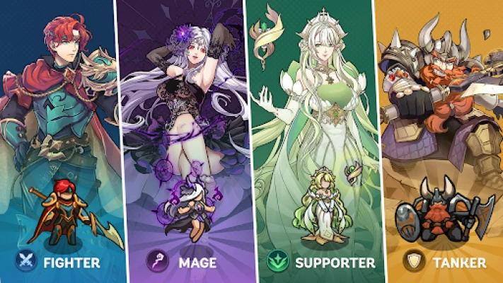 - Triệu tập những anh hùng mạnh mẽ và độc đáo để nâng cao sức mạnh của bạn.