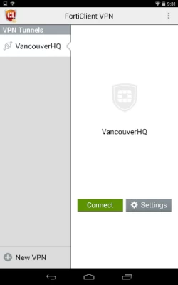 This Free FortiClient VPN App allows you to create a secure Virtual Private Network (VPN) connection using IPSec or SSL VPN "Tunnel Mode" connections between your Android device and FortiGate Firewall. Your connection will be fully encrypted and all traffic will be sent over the secure tunnel.
