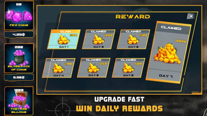 Log in daily to collect free coins, unlock gear, and keep climbing the ranks. Every win brings you closer to the next big upgrade. Progress quickly and stay battle-ready, whether you’re in a zombie shooting game or a fast-paced PvP duel in survival mode.