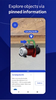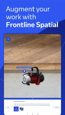 Làm phong phú thêm thực tế của nhân viên bằng cách thêm các hướng dẫn không gian có liên quan vào các đối tượng để hướng dẫn quy trình trực quan hoặc cho phép họ tương tác và sửa đổi các mô hình 3D của sản phẩm bằng cách trang bị cho họ Spatial Workplace của TeamViewer Frontline.