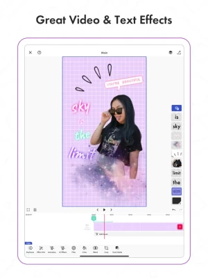 Lip sync, dance and freestyle videos with awesome text effects, AI effects & video effects;