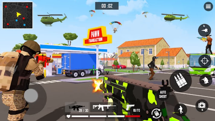 • Đồ họa pixel 3D và Nhân vật quân sự bằng súng khối tham gia trận chiến