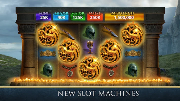 Winter is coming. The great houses of Westeros are preparing themselves for a free slots game adventure: Game of Thrones Slots Casino. Are you ready to spin slot machines on your way to the ultimate glory: The Iron Throne? Test your skill in the most immersive, free slot machine game to come out of the Seven Kingdoms. Immerse yourself in this free casino game and relive memorable Game of Thrones moments by experiencing competitive online slots with the classic sights, sounds, and beautiful art all based on Game of Thrones! Dive into a mix of classic casino slots and enjoy never-before-seen social features, where teamwork on the online slot games can aid your quest to sit on the Iron Throne.