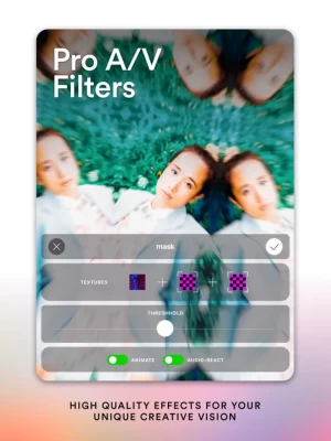 Enjoy free features on us, with creative filter presets, single-clip videos, real-time effects, and audio reactivity built in and ready to roll.