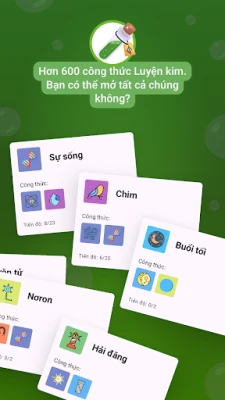 Đảm nhận vai trò của một nhà giả kim đầy tham vọng. Giáo viên của bạn đã cố gắng để hạn chế 4 yếu tố ban đầu: lửa, nước, đất và không khí. Khi trộn các thành phần, bạn phải mở tất cả các công thức nấu ăn để tìm hiểu những bí mật của thuật giả kim. Độc dược, phát minh, động vật, thực vật và nhiều thứ hơn nữa để khám phá!