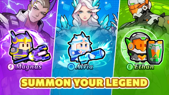 Triệu hồi những anh hùng mạnh mẽ để giúp bạn giành chiến thắng trong cuộc chiến! Magnus Sấm Sét, Alvia Băng Giá và Ethan Thép đã sẵn sàng chiến đấu theo lệnh của bạn.
