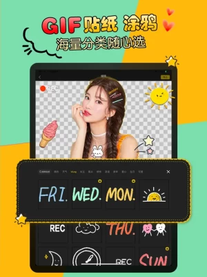 -应用各种丰富贴纸,静态、动态多选择,还内置了强大的贴纸搜索功能
