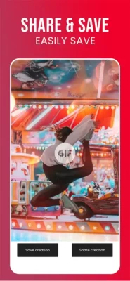 You can save GIFs to the gallery and also share them on Social Media platforms like Facebook, WhatsApp & Instagram.