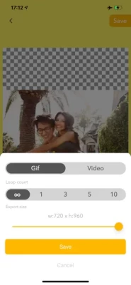 -- Basic usage -- - Pick the media you want to convert to gif. - Adjust speed. - Set loop count and export size. - Some mode supports background color and transparency.