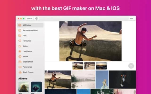 Explore your photos in a new brand way. Giftr creates magical animated memories with your pictures. Designed to be the most advanced GIF maker for Mac, iPhone and iPad. Giftr is also very easy to use and packed with editing tools. It’s the ideal App for advanced and novice users.