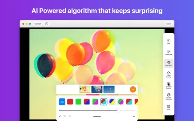 - Grain, color shift, double exposure, color & gradient overlay