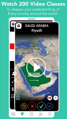 Ginkgo Geography takes flashcards learning to the next level by providing you with video classes that explain in detail the culture, history, and geography of every country in the world. You'll get a chance to explore each country's landmarks, cuisine, and customs, and understand the context behind its current events.